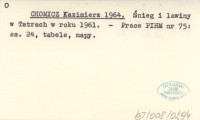 CHOMICZ Kazimierz 1962 d Śnieg i lawiny w Tatrach w roku 1960.
