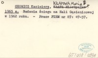 CHOMICZ Kazimierz KŁAPOWA, Maria. ; 1965 a Badania śniegu na Hali Gąsienicowej w 1962 roku.