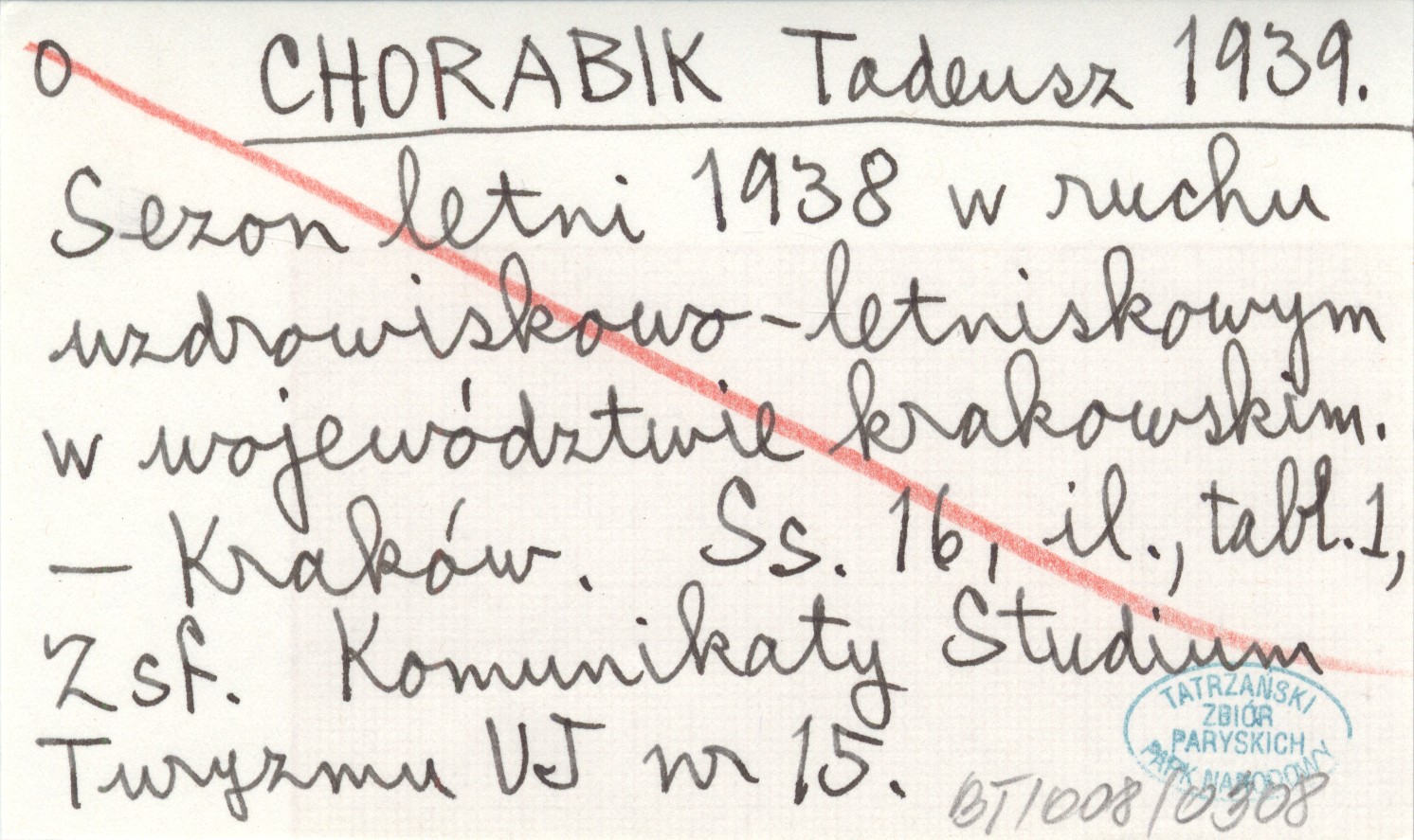 CHORABIK Tadeusz 1939 Sezon letni 1938 w ruchu uzdrowiskowo-letniskowym w województwie krakowskim.