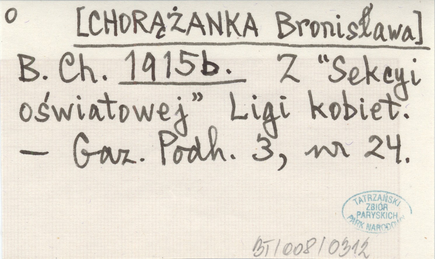 B. Ch. [CHORĄŻANKA Bronisława] 1915 b Z "Sekcyi oświatowej" Ligi kobiet.