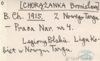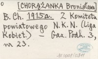 B. Ch. [CHORĄŻANKA Bronisława] 1915 a Z Komitetu powiatowego N.K.N. (Liga Kobiet).