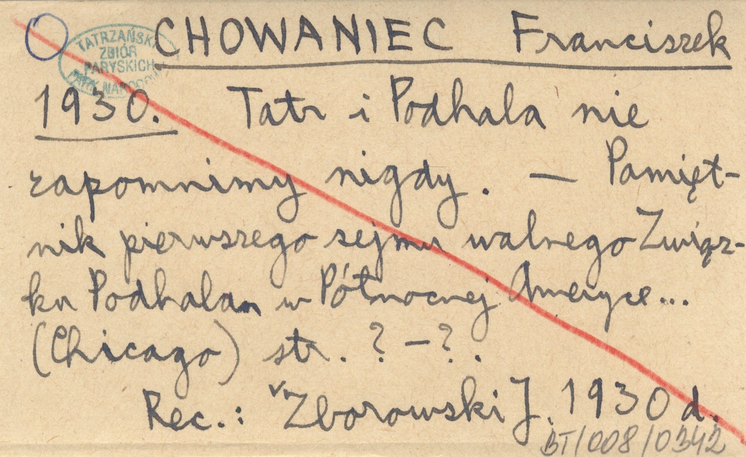 CHOWANIEC Franciszek 1930 Tatr i Podhala nie zapomnimy nigdy.