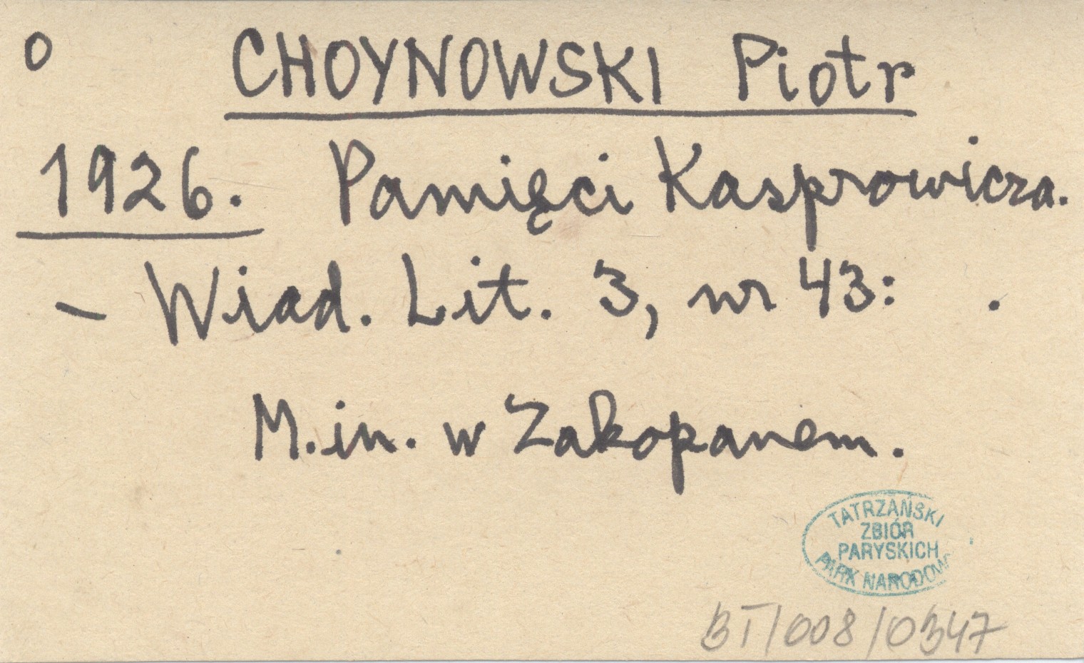 Projekt Digitalizacja fiszek z Bibliografią Tatr i Podtatrza Witolda Henryka Paryskiego jest finansowany ze środków Ministra Kultury i Dziedzictwa Narodowego oraz Tatrzańskiego Parku Narodowego.