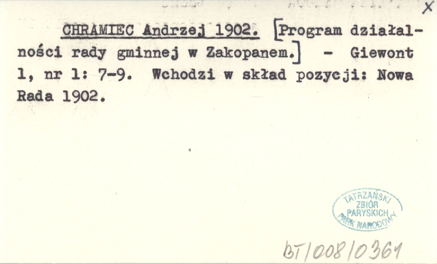 CHRAMIEC Andrzej 1902 [Program działalności rady gminnej w Zakopanem.]