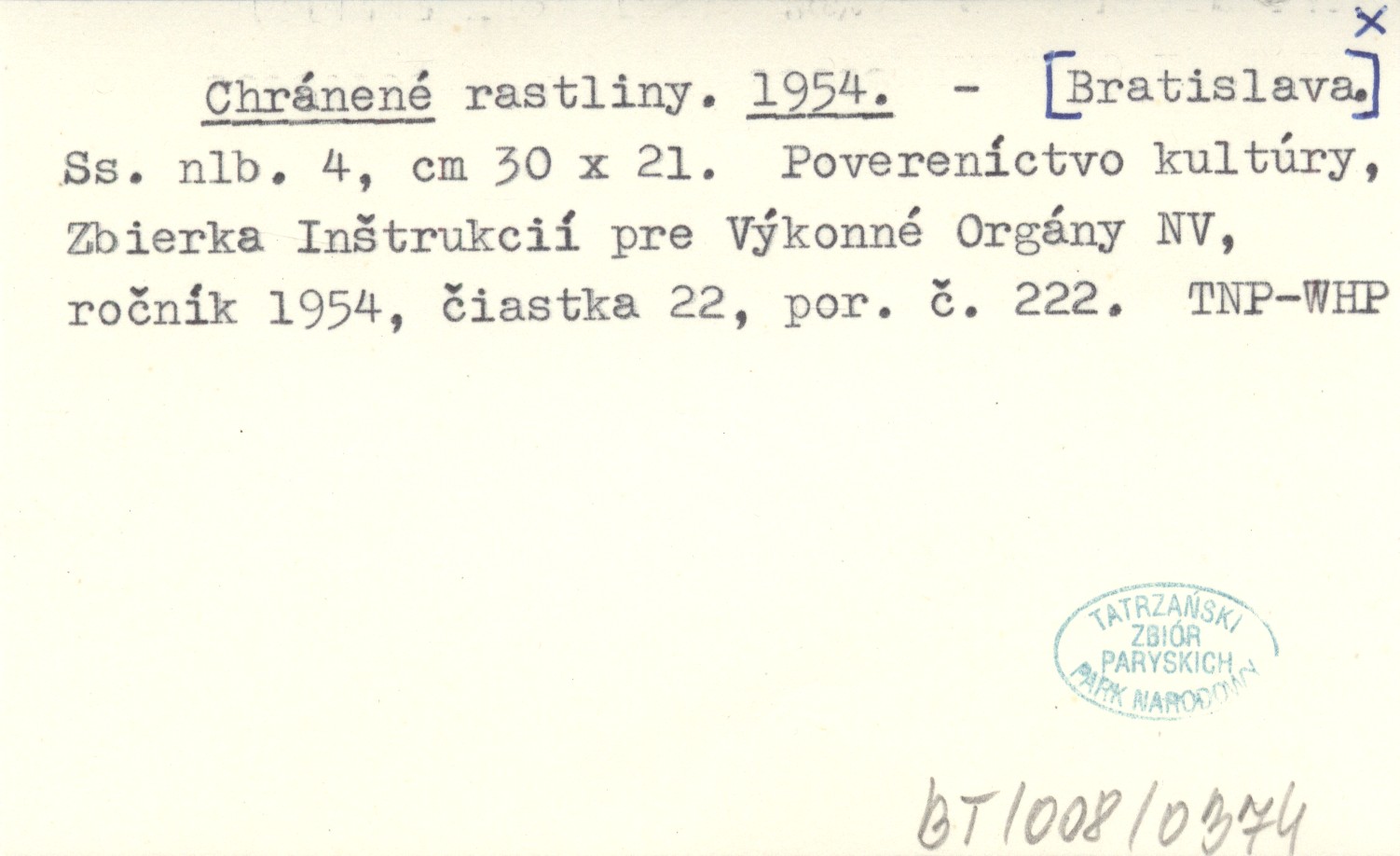 Povereníctvo kultúry, Zbierka Inštrukcií pre Výkonné Orgány NV ([Bratislava]) , R. 1954, cz. 22: [4] s., 30x21 cm. Por.: nr 222.