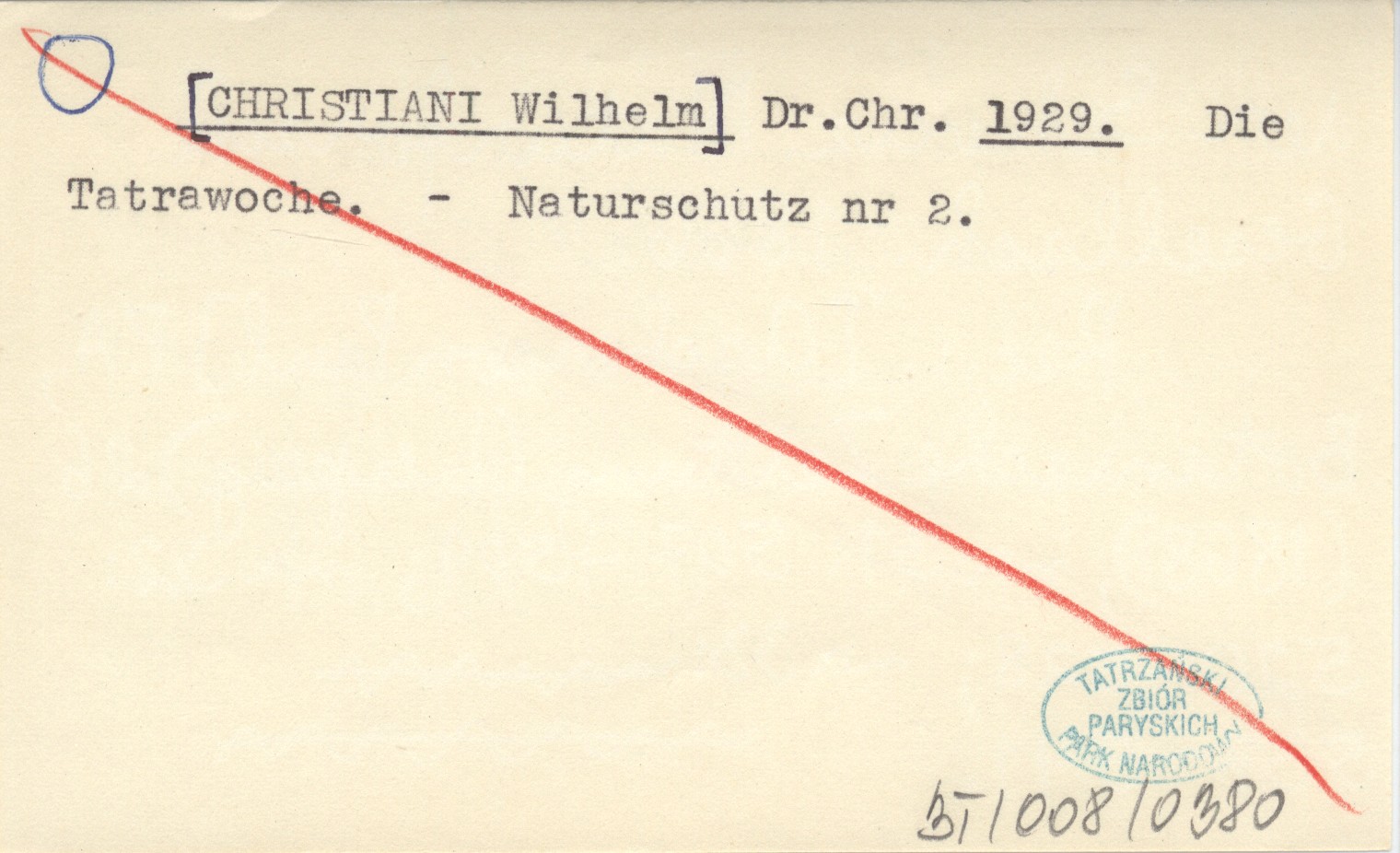 Dr. Chr. [CHRISTIANI Wilhelm] 1929 Die Tatrawoche.