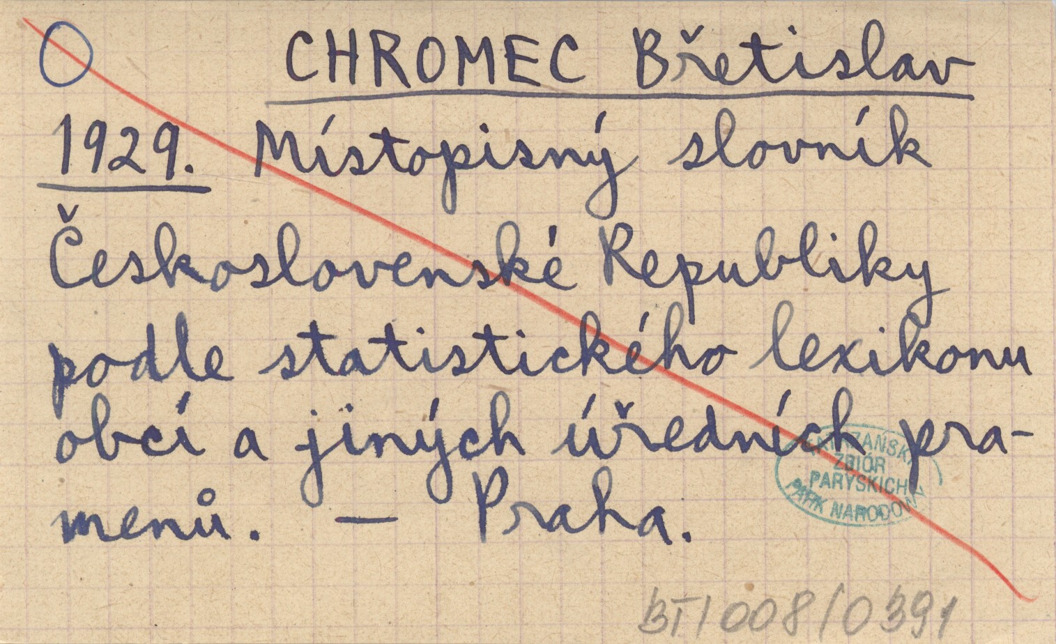 CHROMEC Břetislav 1929 Místopisný slovník Československé Republiky podle statistického lexikonu obcí a jiných úľedních pramenů.