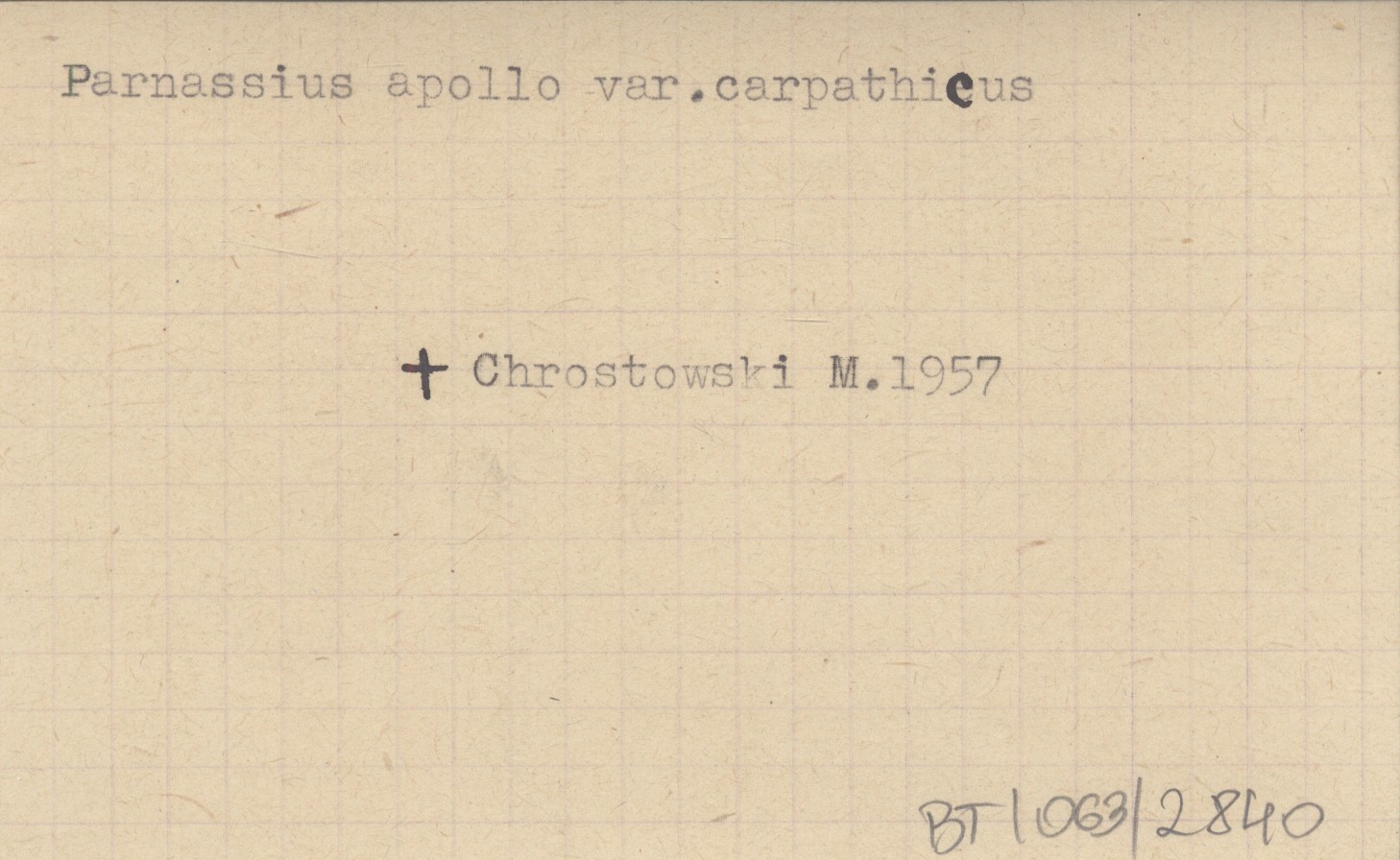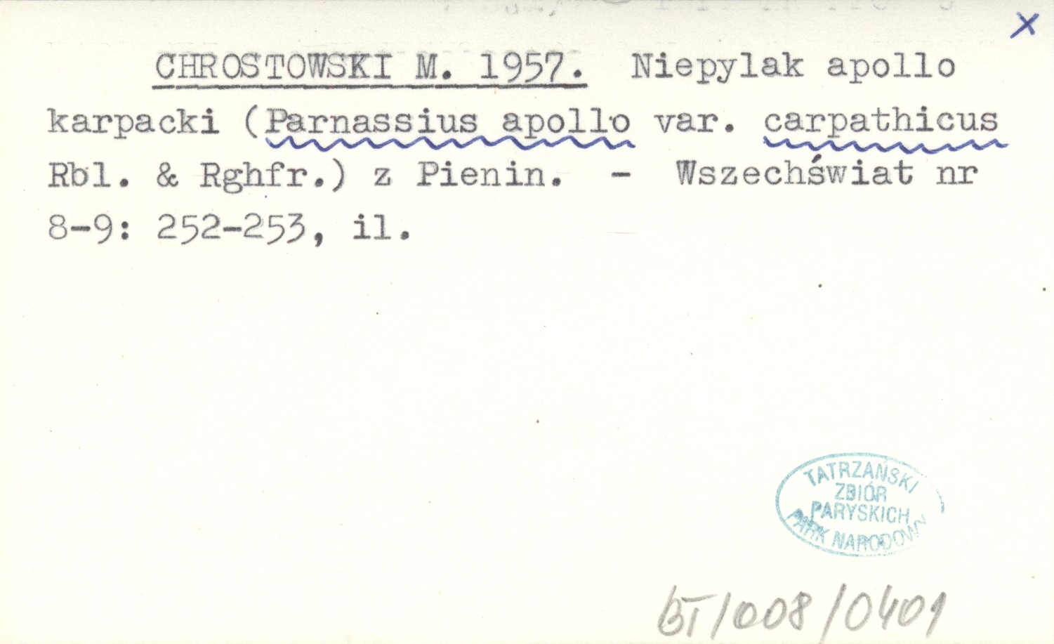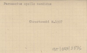 CHROSTOWSKI M. 1957 Niepylak apollo karpacki (Parnassius apollo var. carpathicus Rbl. & Rghfr.) z Pienin.