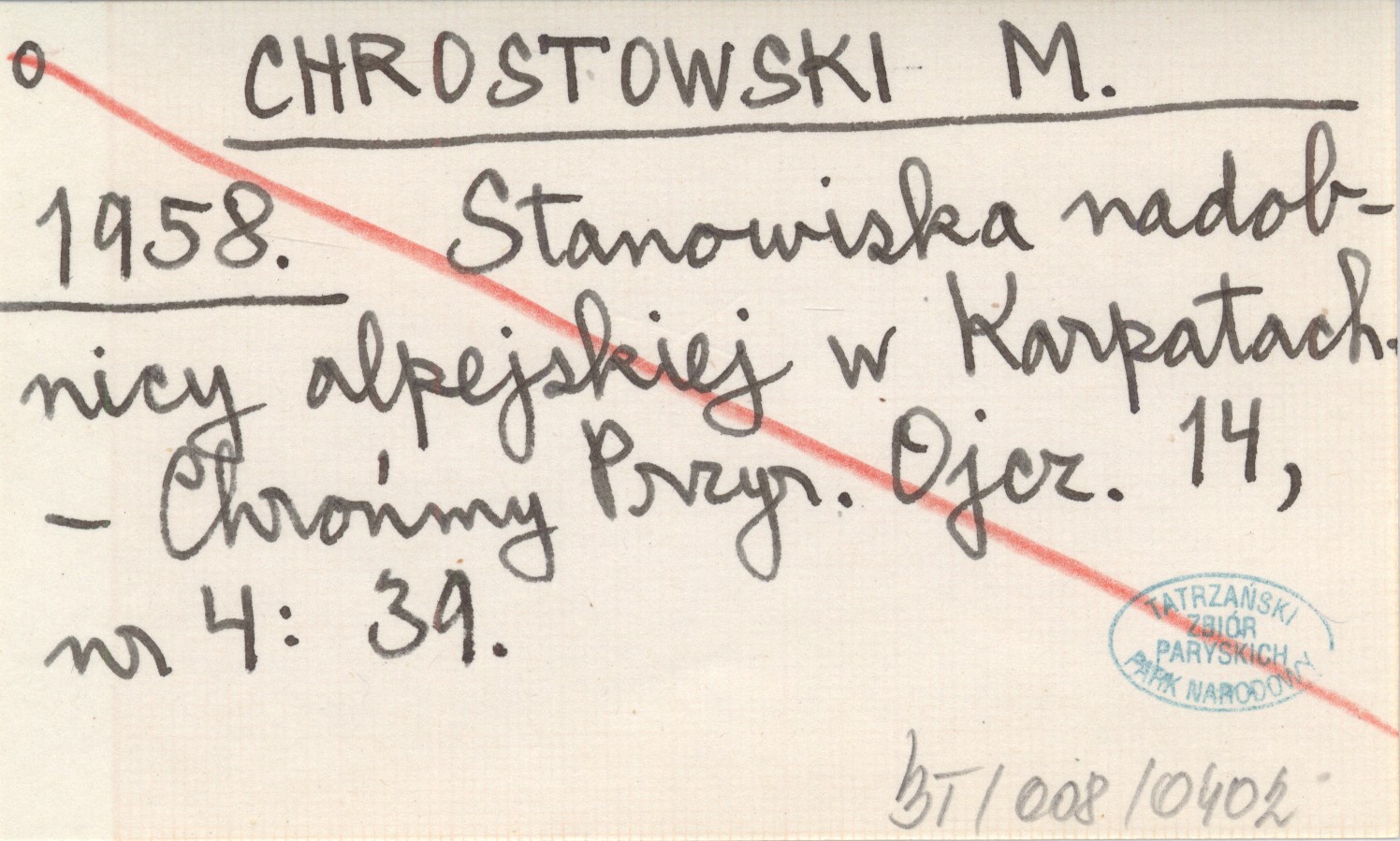 CHROSTOWSKI M. 1958 Stanowiska nadobnicy alpejskiej w Karpatach.