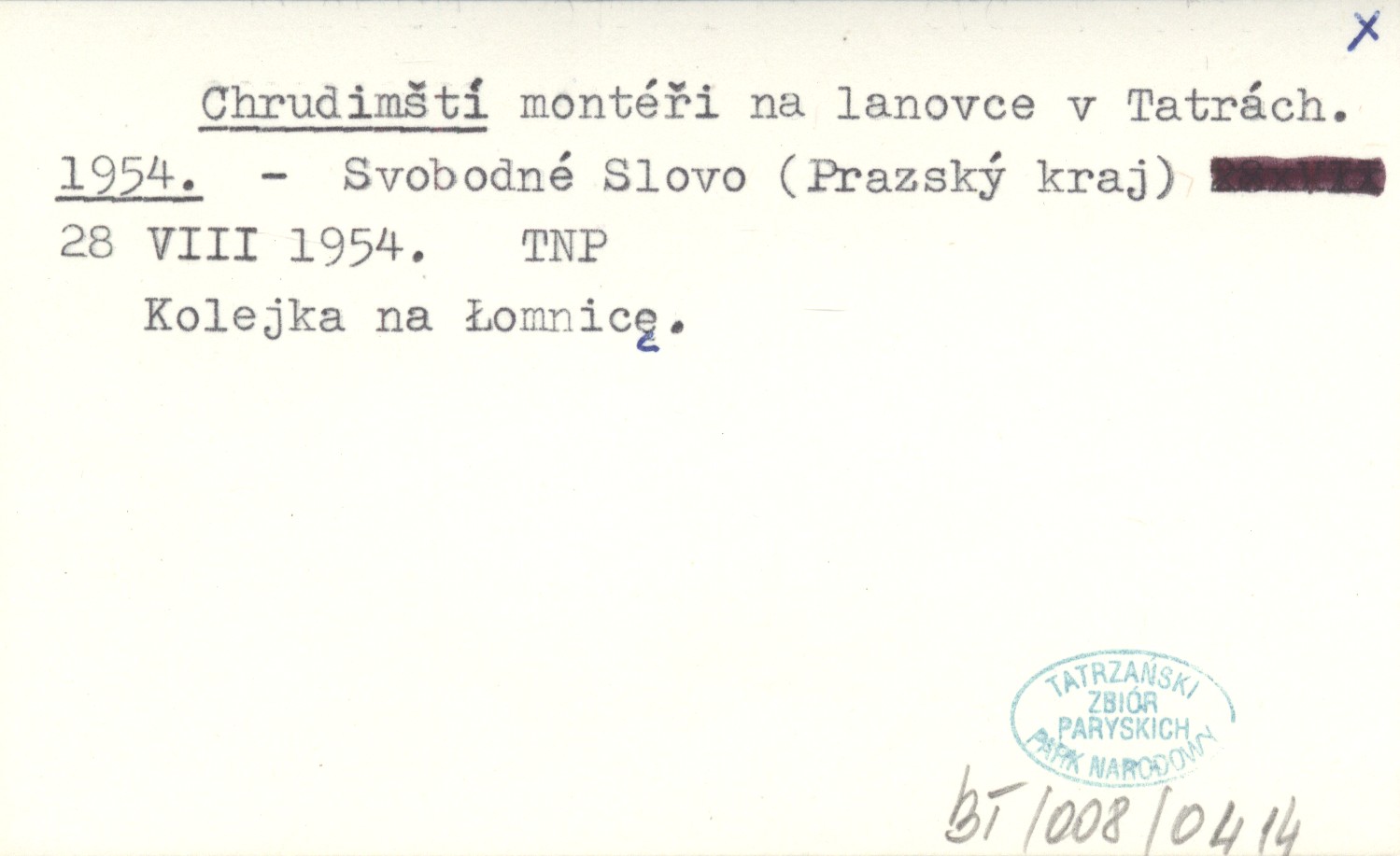 Svobodné Slovo (Prazský kraj) , 28 VIII 1954. Kolejka na Łomnicę.