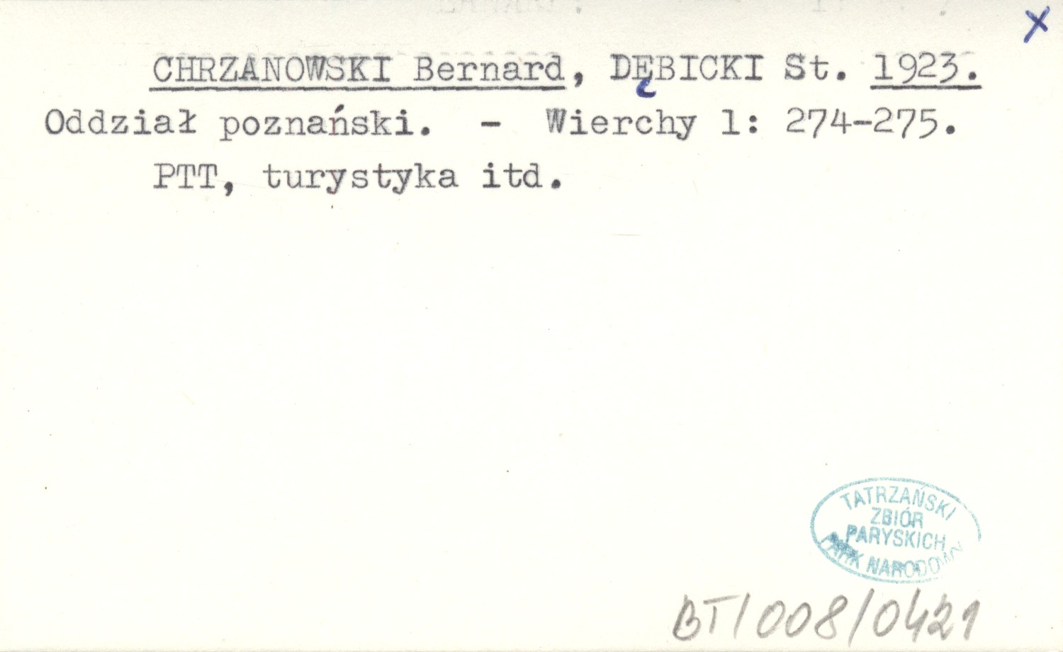 CHRZANOWSKI Bernard DĘBICKI, St. ; 1923 Oddział poznański.