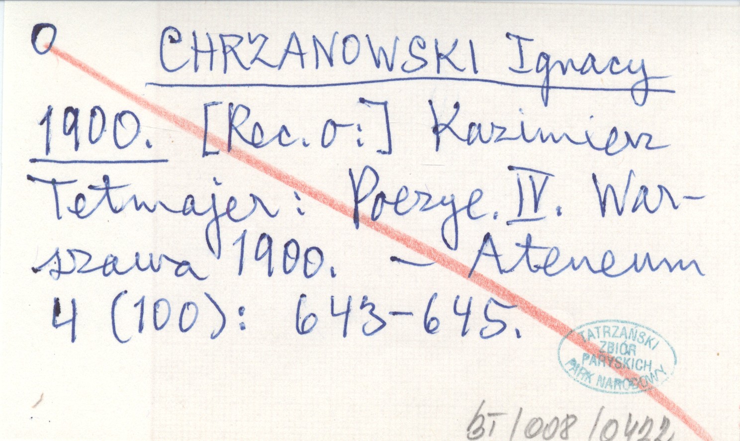 CHRZANOWSKI Ignacy 1900 Kazimierz Przerwa Tetmajer: Poezye. IV. Warszawa 1900.