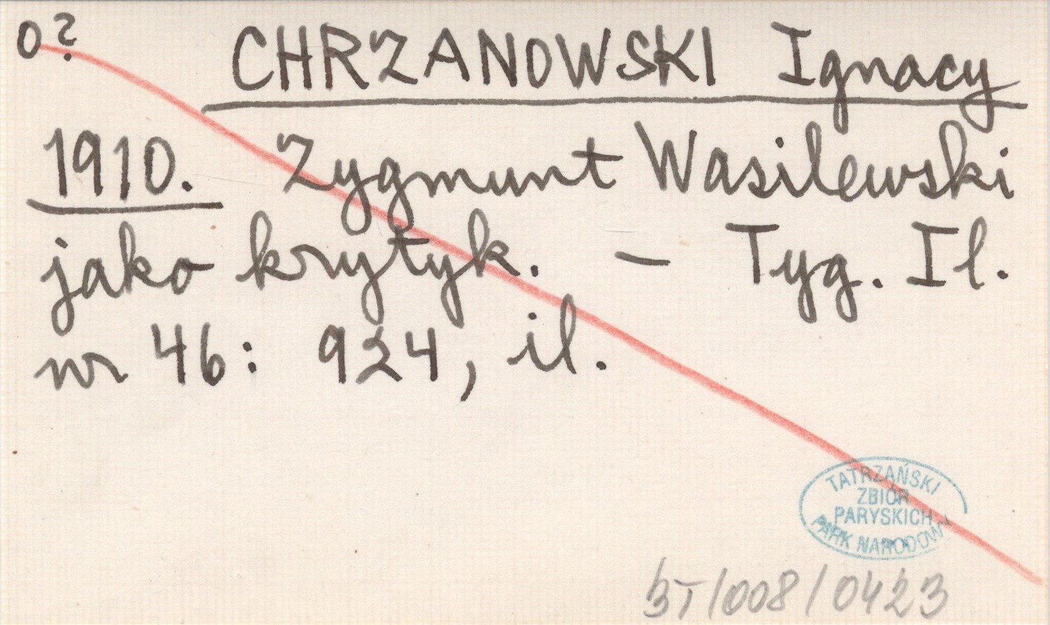 CHRZANOWSKI Ignacy 1910 Zygmunt Wasilewski jako krytyk.