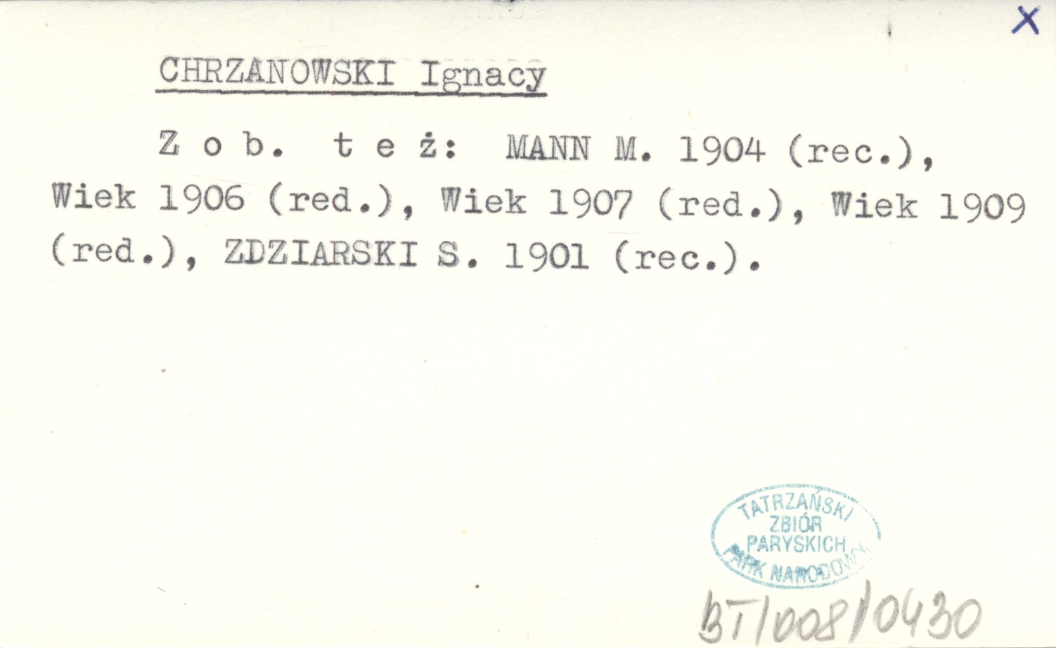 MANN M. 1904 (rec.) Wiek 1906 (red.), 1907 (red.), 1909 (red.) ZDZIARSKI S. 1901 (rec.)