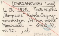 L. Ch. [CHRZANOWSKI Leon] 1938 Teatr Wielki. "Harnasie" Karola Szymanowskiego. "Verbum nobile" Moniuszki.