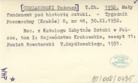 T.Ch. [CHRZANOWSKI Tadeusz] 1952 Mały fundament pod historię sztuki.