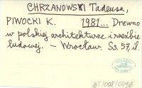 CHRZANOWSKI Tadeusz PIWOCKI, K. ; 1981... Drewno w polskiej architekturze i rzeźbie ludowej.