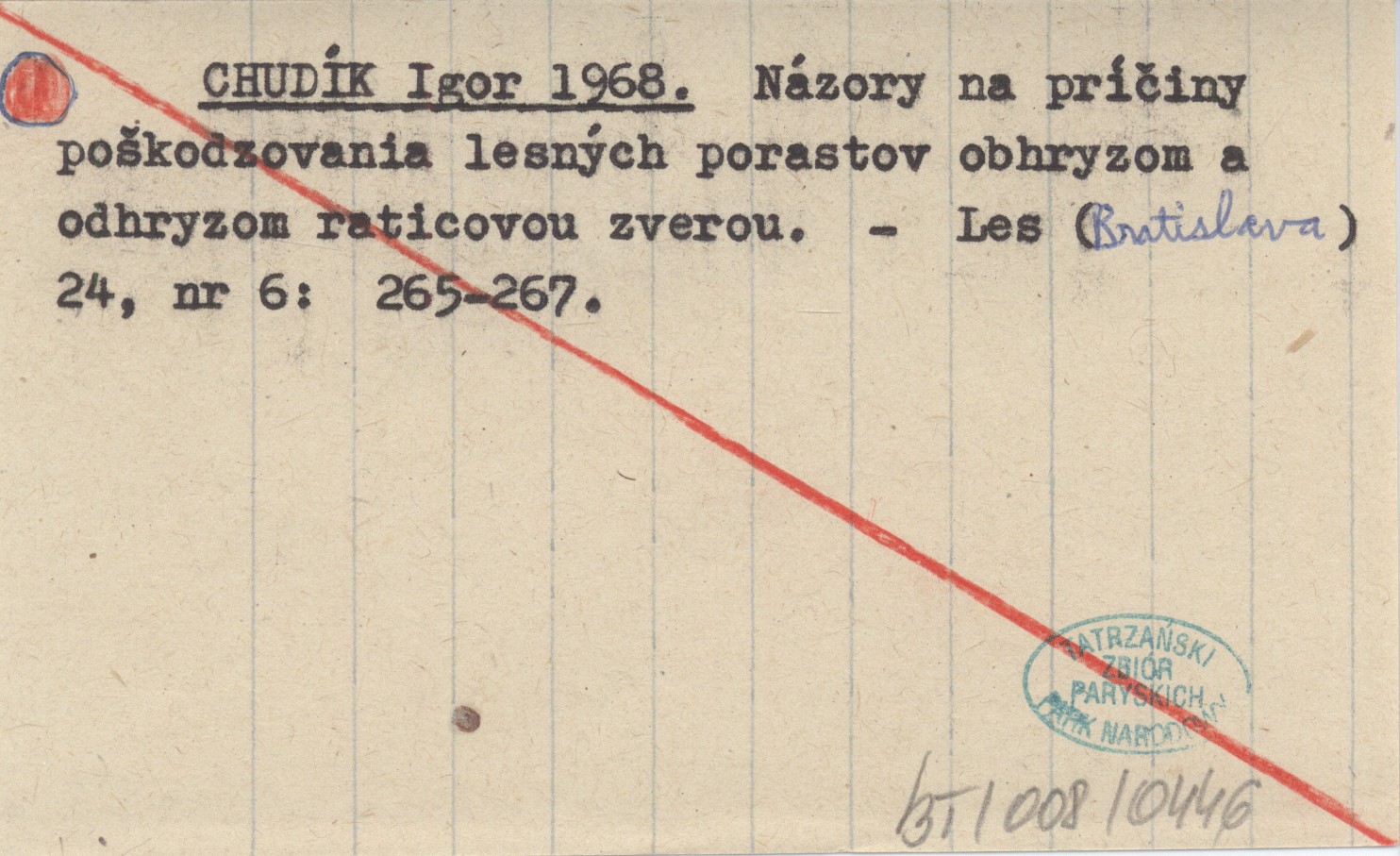 CHUDÍK Igor 1968 Názory na príčiny poškodzovania lesných porastov obhryzom a odhryzom raticovou zverou.