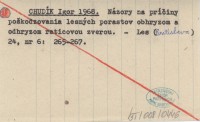 CHUDÍK Igor 1969 Skúsenosti s opatreniami proti poąkodzovaniu lesných porastov jeleňou a srnčou zverou na územi Tatranského národného parku.