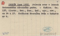 CHUDÍK Igor 1972 Jelenia zver v lesoch Tatrasnkého národného parku.