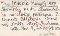 [CHUDÍK Michal] 1957 Spomienky na dni Slovenského národného povstania. Z činnosti Oddelenia finančnej stráže Starý Smokovec.