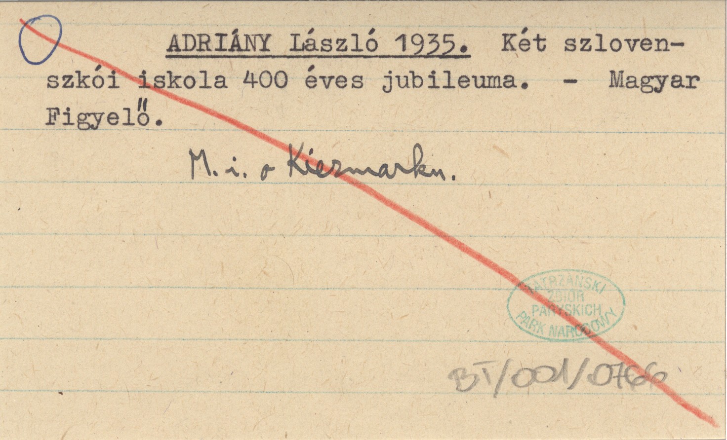 Magyar Figyelö, M. in. o Kiezmarku.