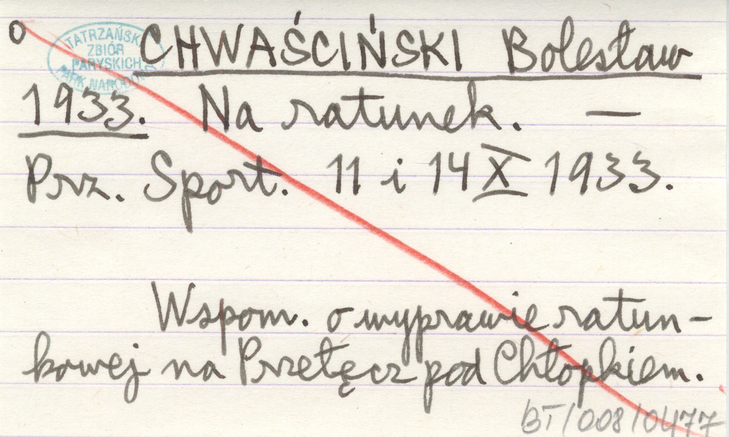 Przegląd Sportowy, 11 i 14 X 1933. Wspomnienie o wyprawie ratunkowej na Przełęcz pod Chłopkiem.