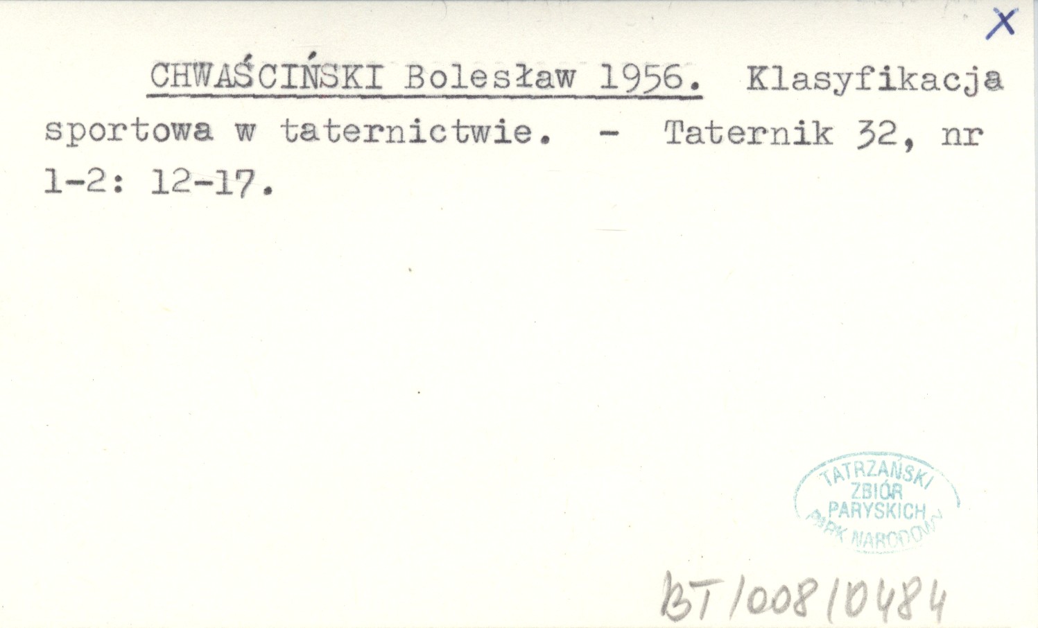 CHWAŚCIŃSKI Bolesław 1956 Klasyfikacja sportowa w taternictwie.