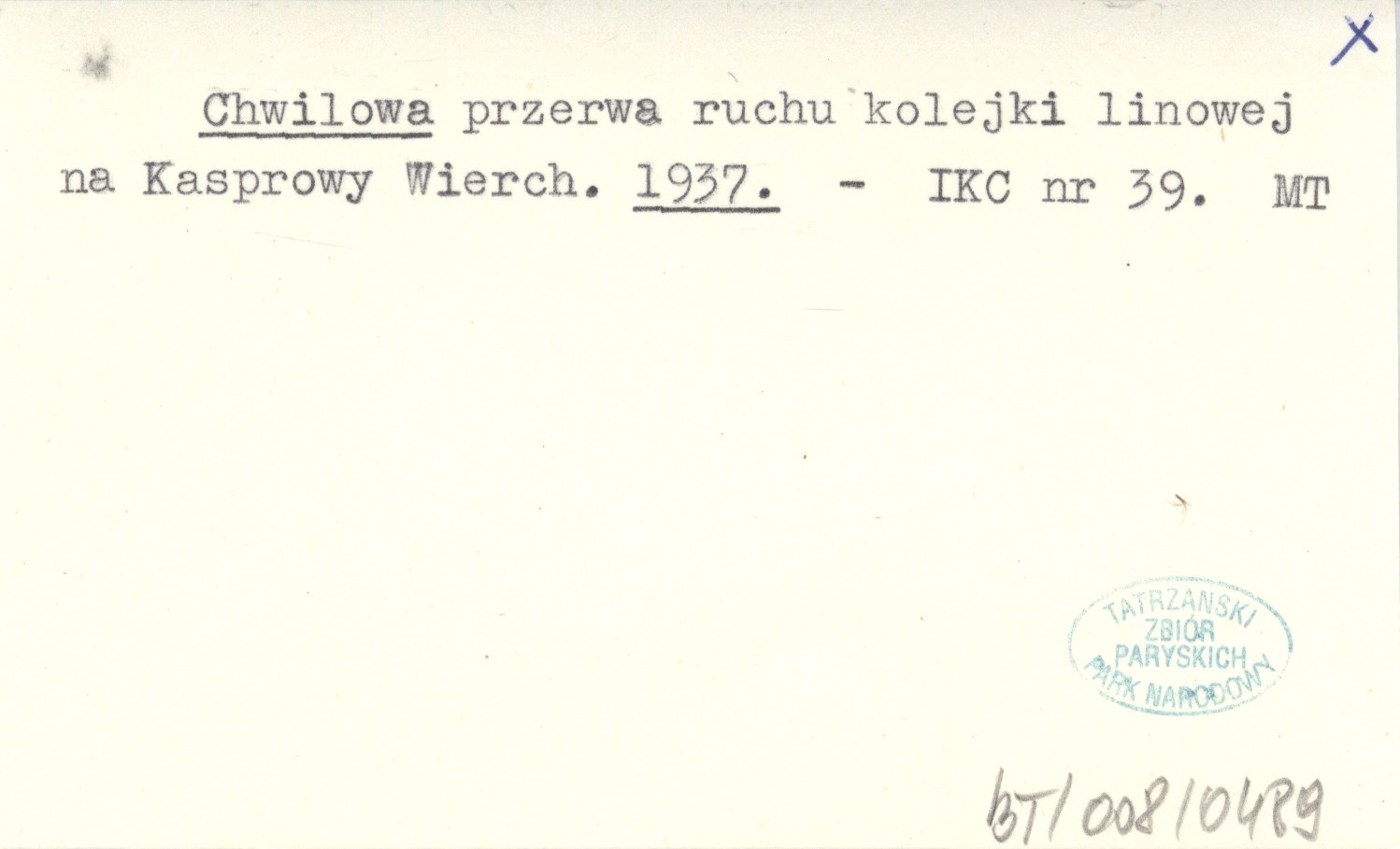 Chwilowa przerwa ruchu kolejki linowej na Kasprowy Wierch. 1937