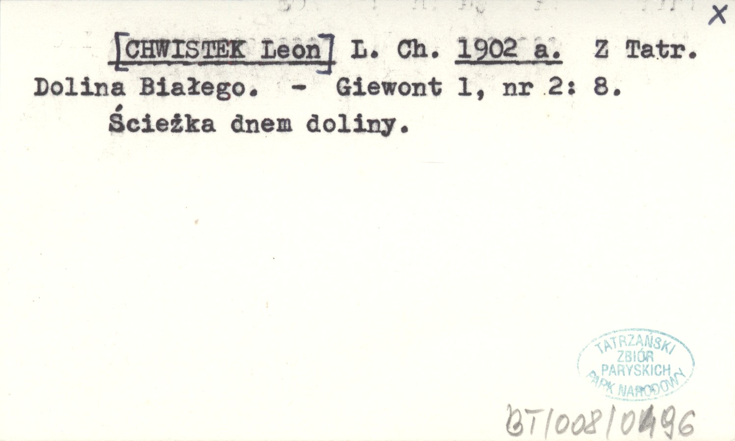L. Ch. [CHWISTEK Leon] 1902 a Z Tatr. Dolina Białego.