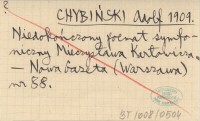 CHYBIŃSKI Adolf 1909 Mieczysław Karłowicz.