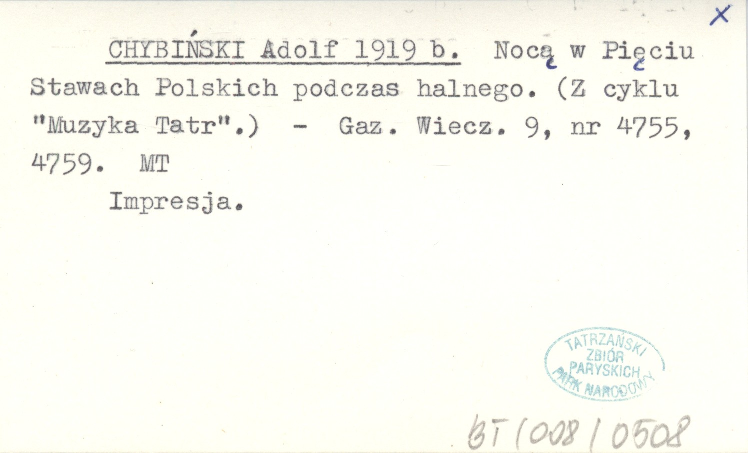 CHYBIŃSKI Adolf 1919 b Nocą w Pięciu Stawach Polskich podczas halnego. (Z cyklu "Muzyka Tatr").