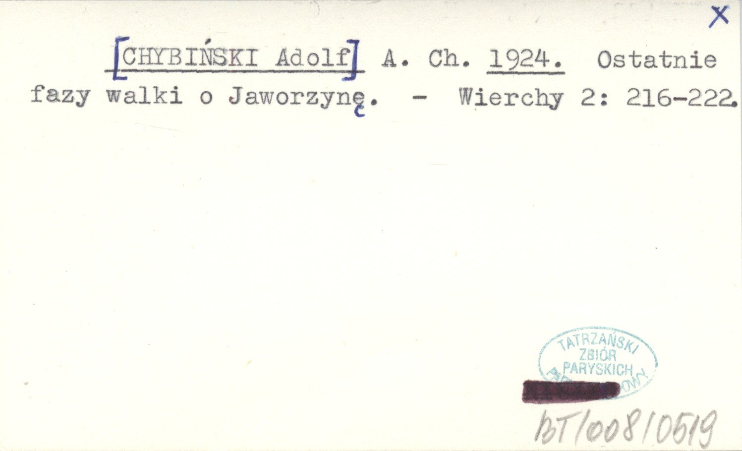 A. Ch. [CHYBIŃSKI Adolf] 1924 Ostatnie fazy walki o Jaworzynę.