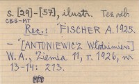 Prace i Materjały Antropologiczno - Archeologiczne i Etnograficzne Kraków , T. 4, cz. 3 (Prace i Materjały Etnograficzne): [29]-[57], il. Też odb. REC: FISCHER A. 1925. [ANTONIEWICZ Włodzimierz] W.A., Ziemia 11, r. 1926, nr 13-14: 213.