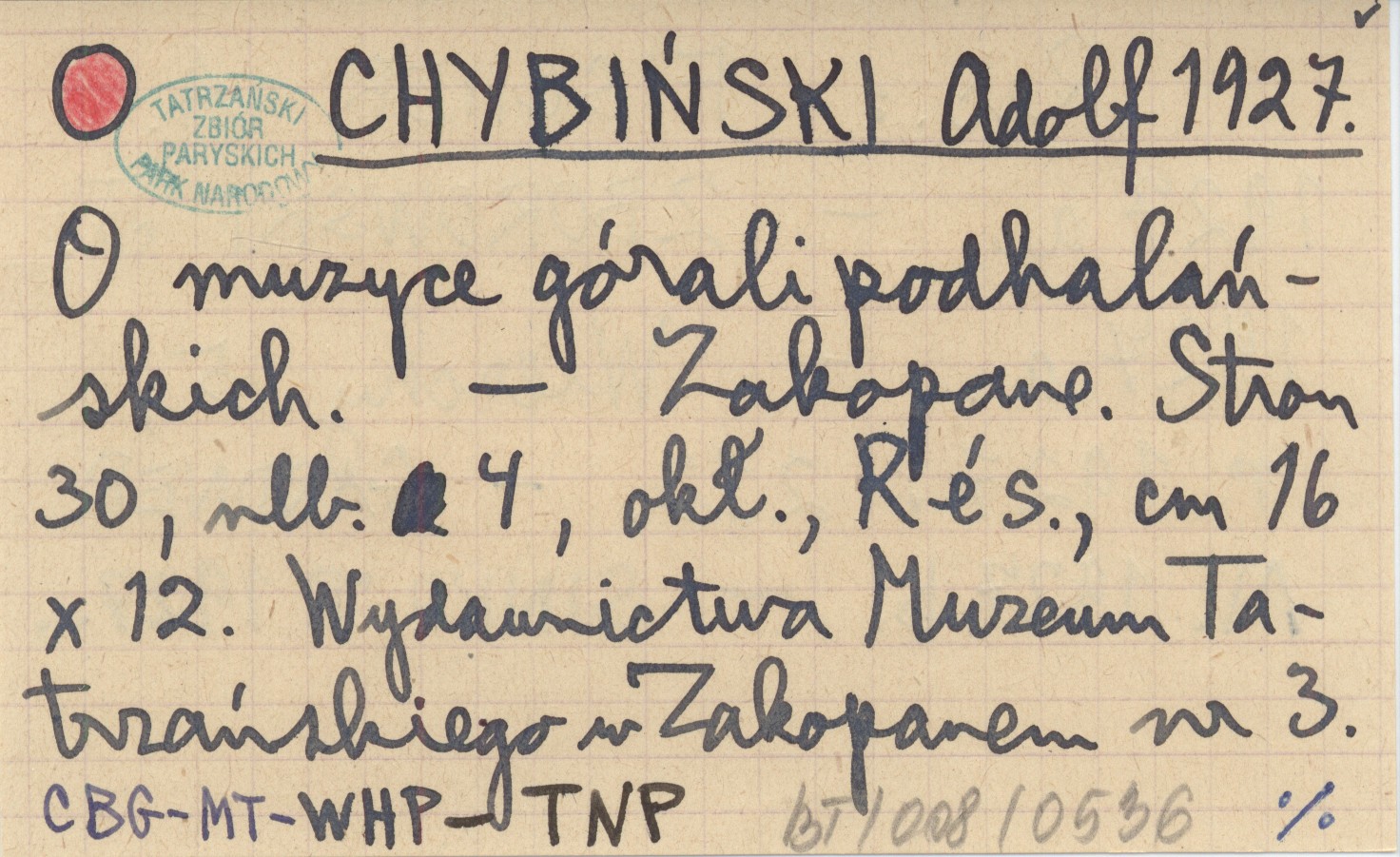 CHYBIŃSKI Adolf 1927 O muzyce górali podhalańskich.