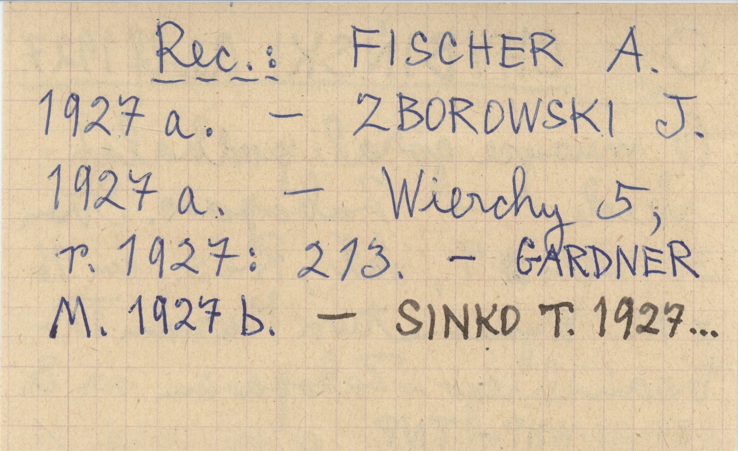 Wydawnictwa Muzeum Tatrzańskiego w Zakopanem, Zakopane , Nr 3: [4], 30 s., okł., Rés., 16x12 cm. REC: FISCHER A. 1927 a ; ZBOROWSKI J. 1927 a ; Wierchy 5, r. 1927: 213 ; GARDNER M. 1927 b. SINKO T. 1927...