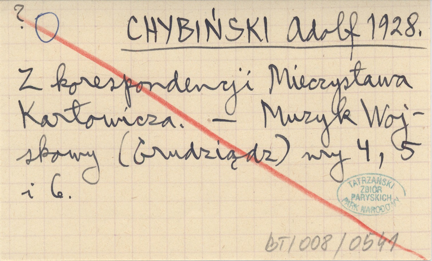 CHYBIŃSKI Adolf 1928 Z korespondencji Mieczysława Karłowicza.