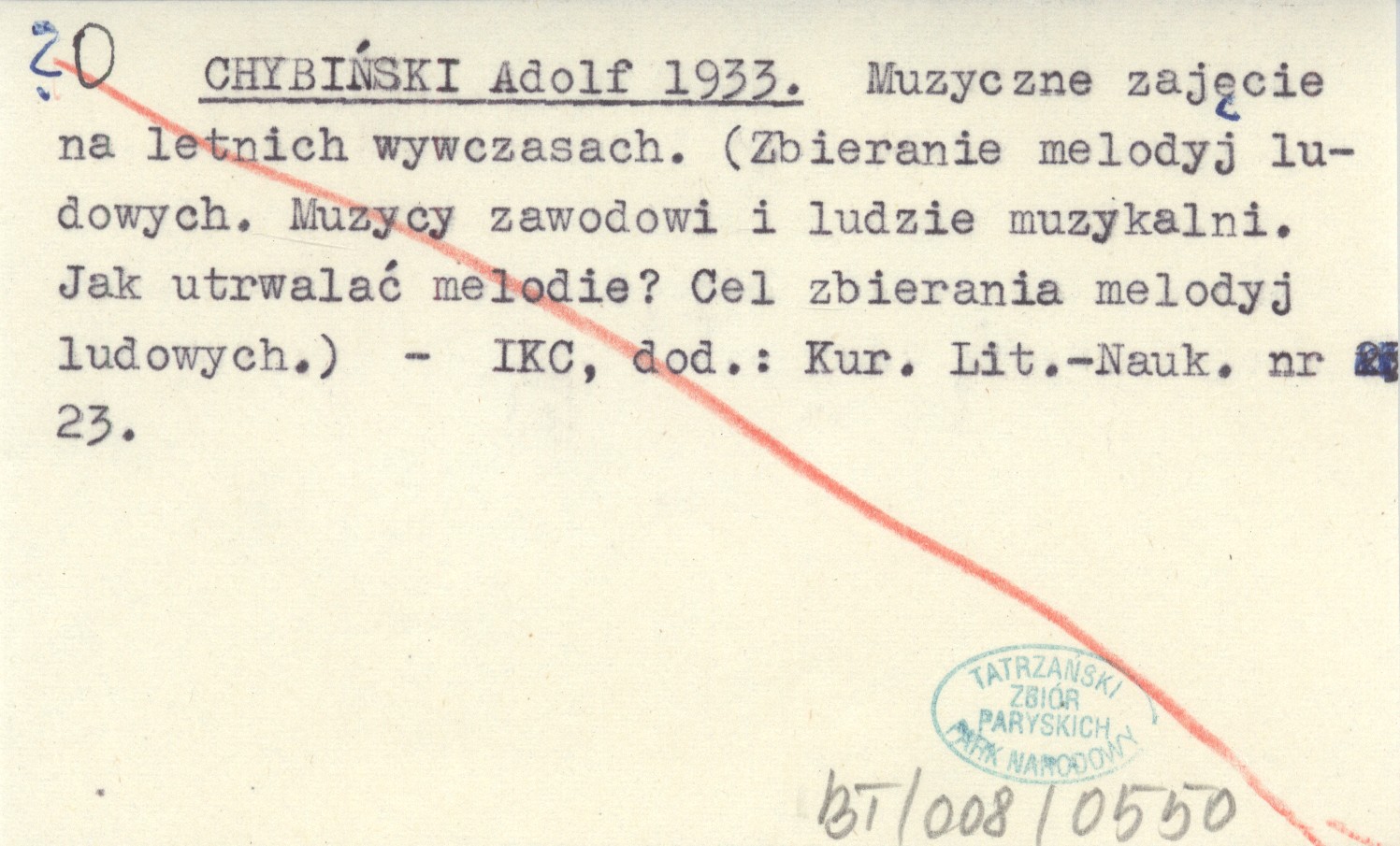 CHYBIŃSKI Adolf 1933 Muzyczne zajęcie na letnich wczasach. (Zbieranie melodyj ludowych. Muzycy zawodowi i ludzie muzykalni. Jak utrwalać melodie? Cel zbierania melodyj ludowych).