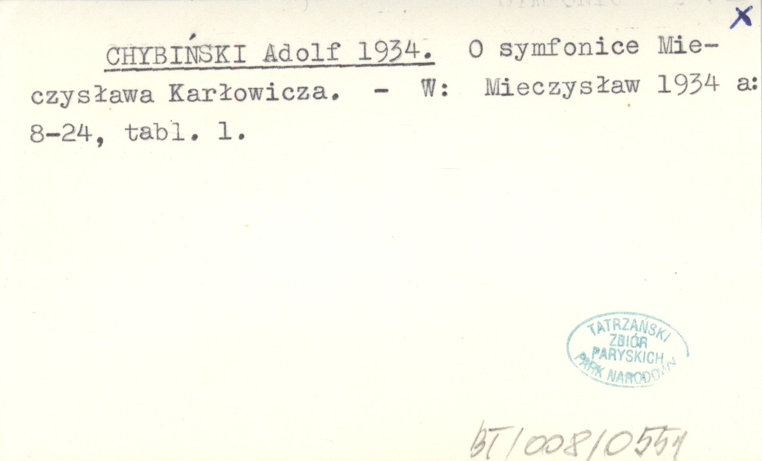 CHYBIŃSKI Adolf 1934 O symfonice Mieczysława Karłowicza.