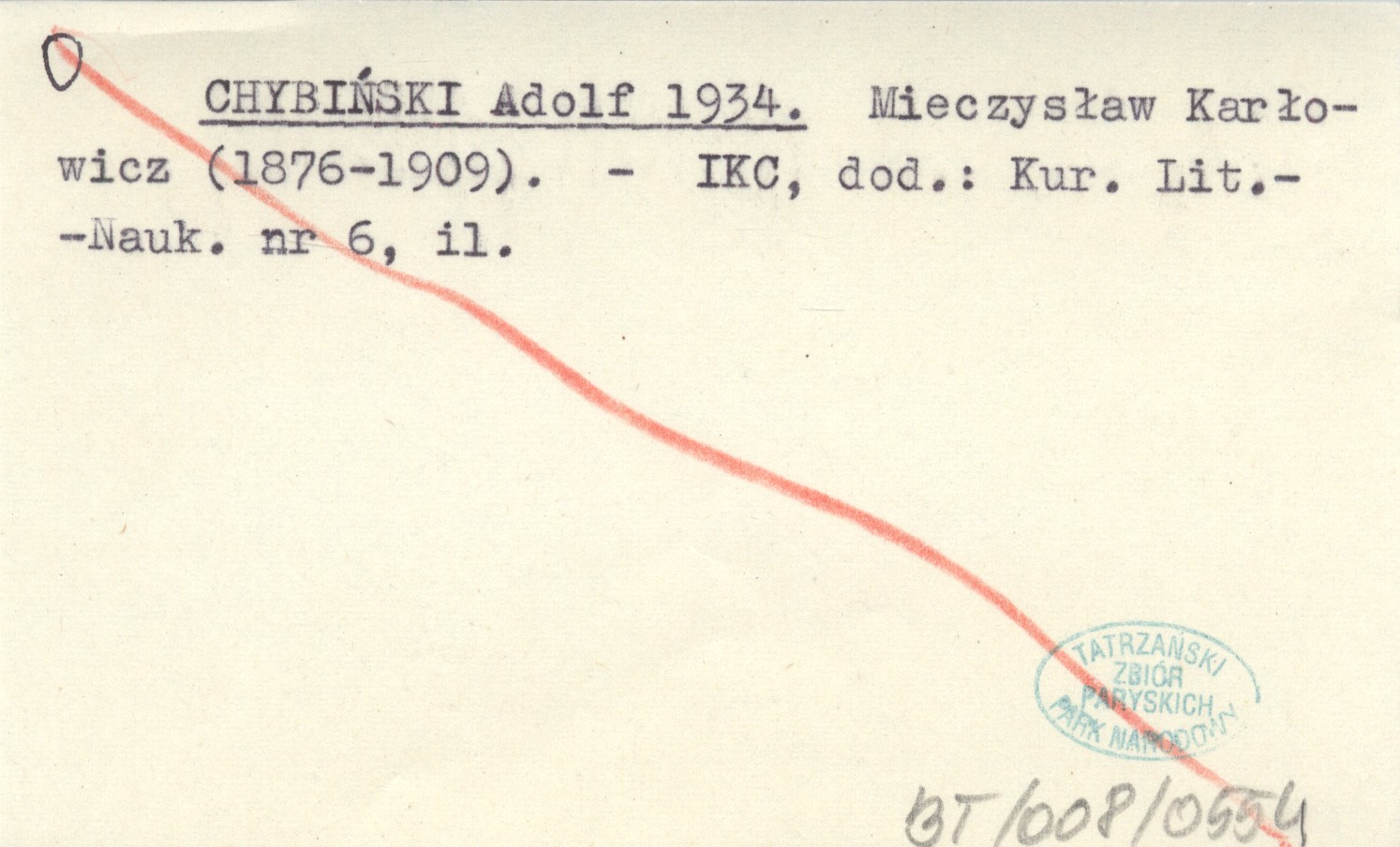 CHYBIŃSKI Adolf 1934 Mieczysław Karłowicz (1876-1909).