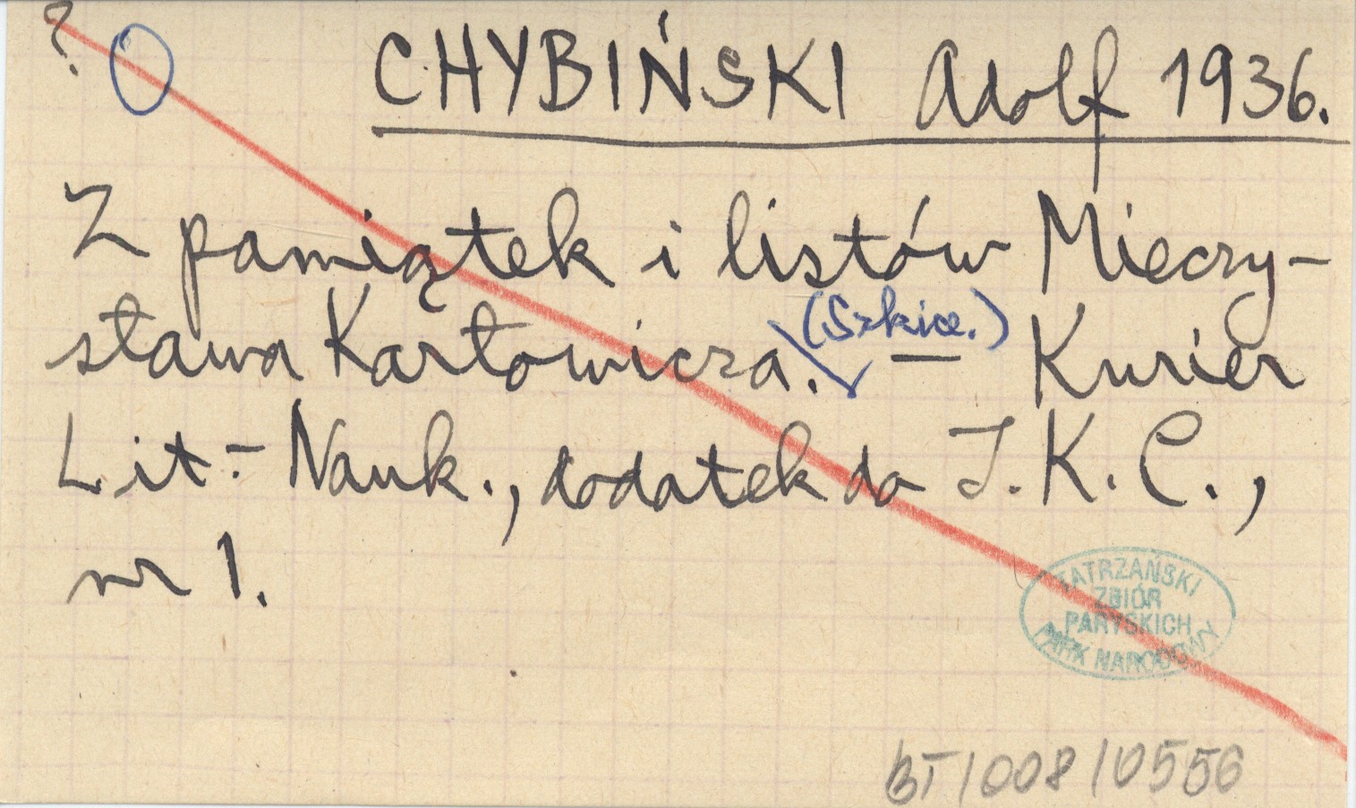 CHYBIŃSKI Adolf 1936 Z pamiątek i listów Mieczysława Karłowicza. (Szkice).
