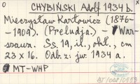CHYBIŃSKI Adolf 1934 b Mieczysław Karłowicz (1876-1909). (Preludja).