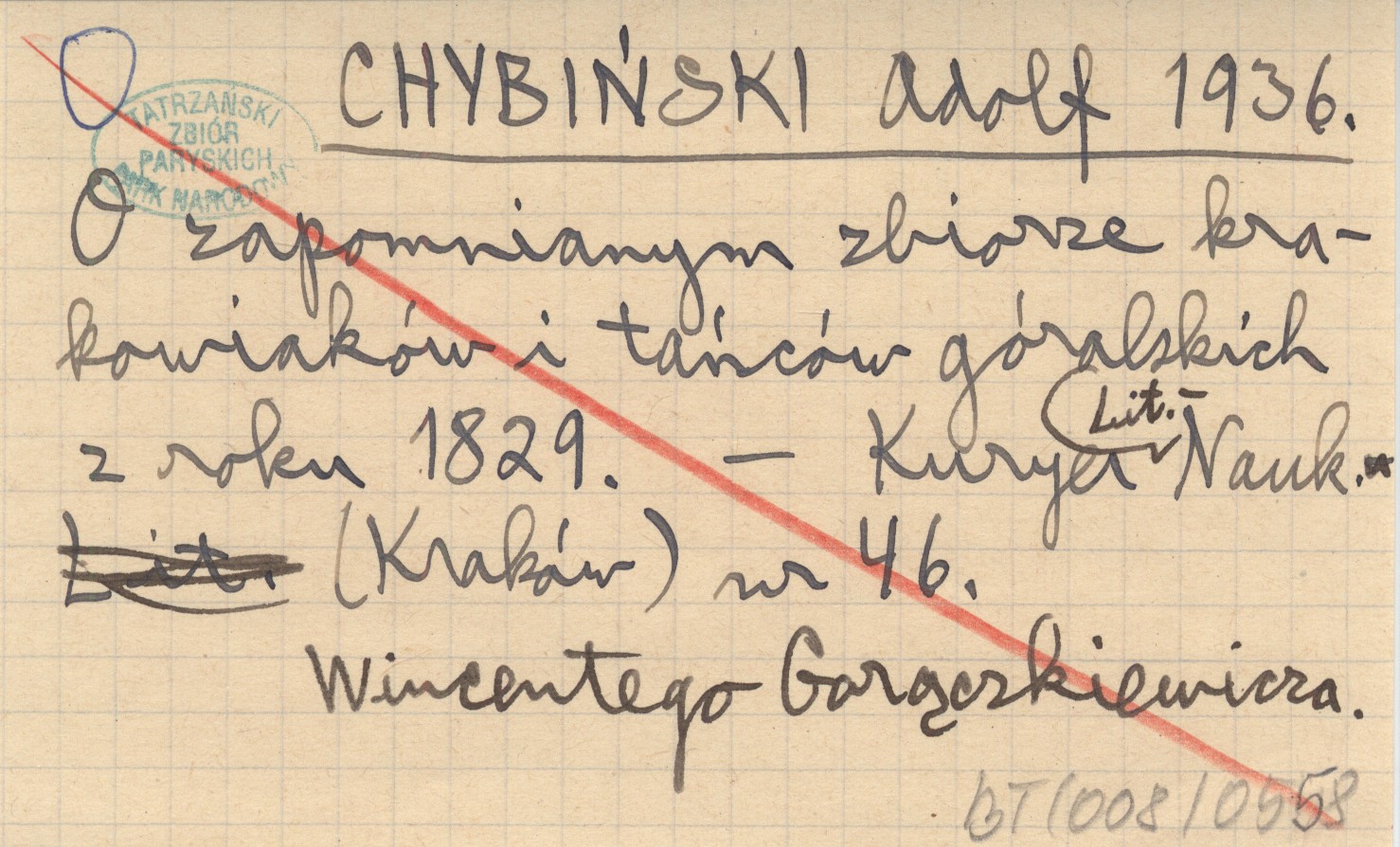 CHYBIŃSKI Adolf 1936 O zapomnianym zbiorze krakowiaków i tańców góralskich z roku 1829.