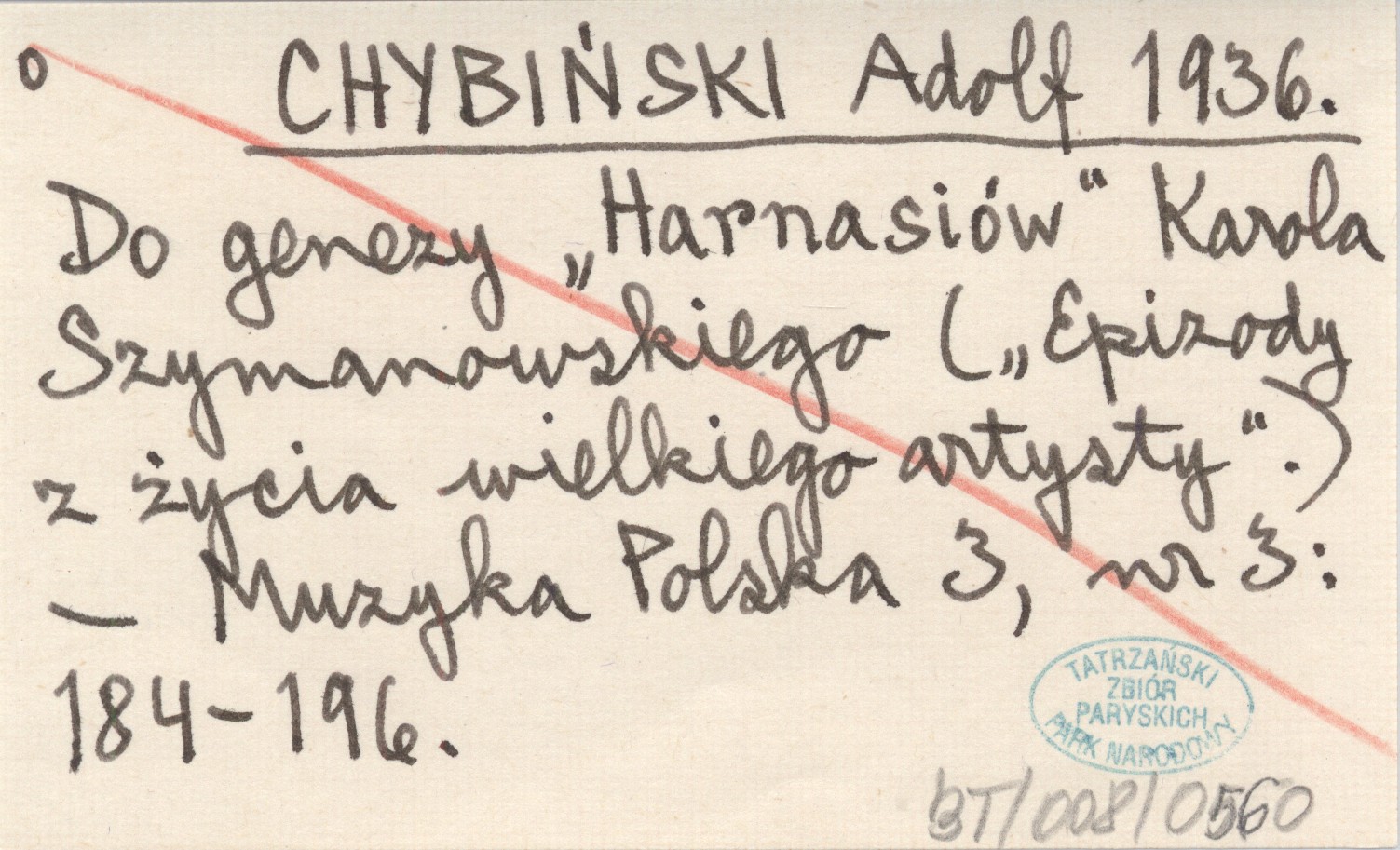 CHYBIŃSKI Adolf 1936 Do genezy "Harnasiów" Karola Szymanowskiego. ("Epizody z życia wielkiego artysty").