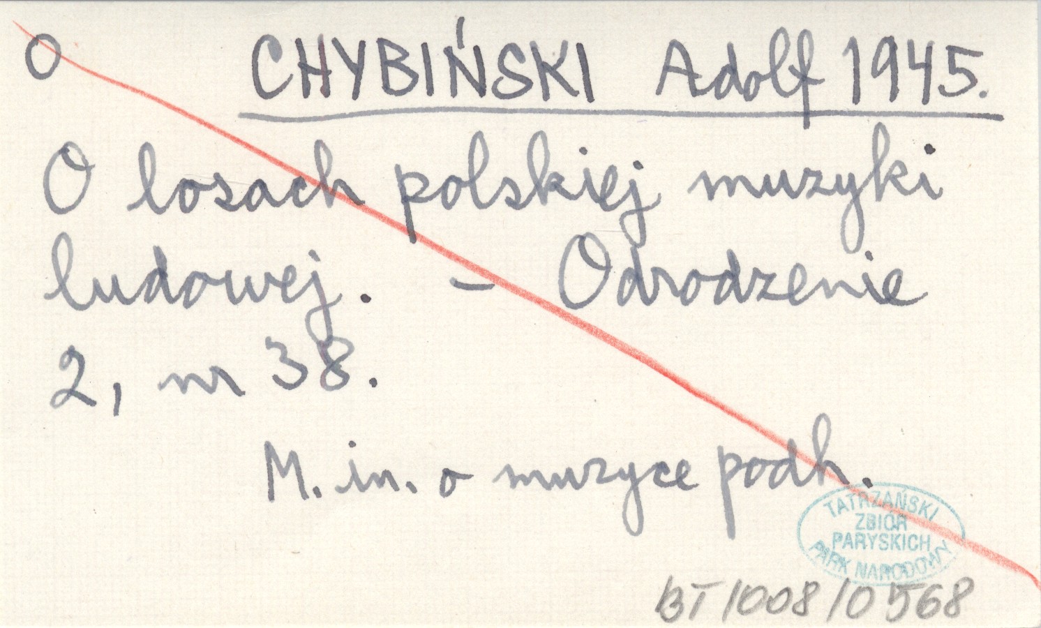 CHYBIŃSKI Adolf 1945 O losach polskiej muzyki ludowej.