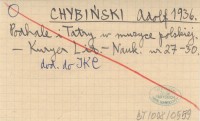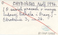 CHYBIŃSKI Adolf 1946 [O swoich pracach o muzyce ludowej Podhala i Orawy].