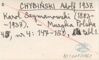 CHYBIŃSKI Adolf 1937 Karol Szymanowski (1883-1937).