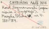 CHYBIŃSKI Adolf 1936 Do genezy "Harnasiów" Karola Szymanowskiego. ("Epizody z życia wielkiego artysty").