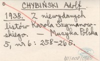 CHYBIŃSKI Adolf 1938 Z niewydanych listów Karola Szymanowskiego.