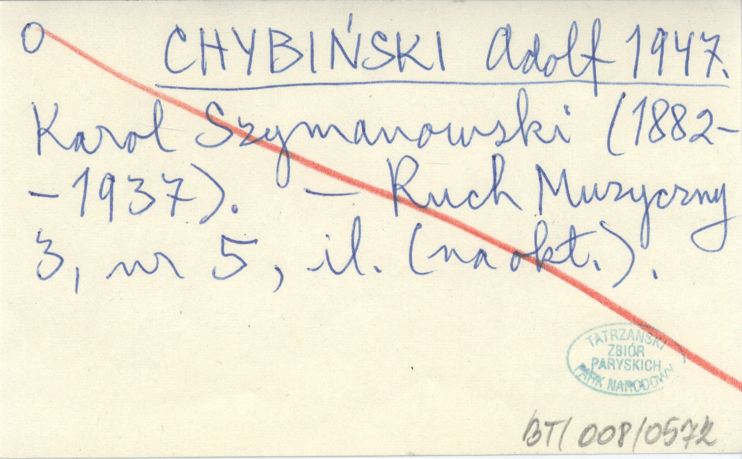 CHYBIŃSKI Adolf 1947 Karol Szymanowski (1882-1937).